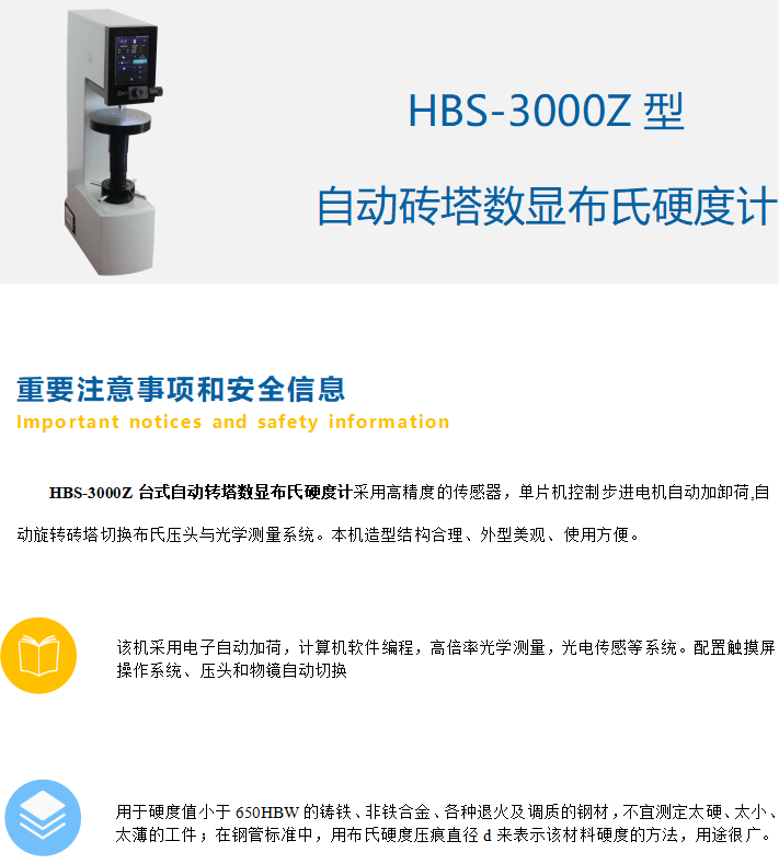 • 產品名稱: HBS-3000Z型自動磚塔數顯布氏硬度計